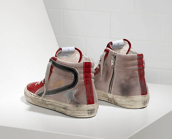 GGDB SNEAKERS SLIDE IN DENIM DI COTONE E STELLA IN PELLE red suede silver sta Lovers