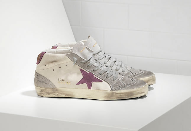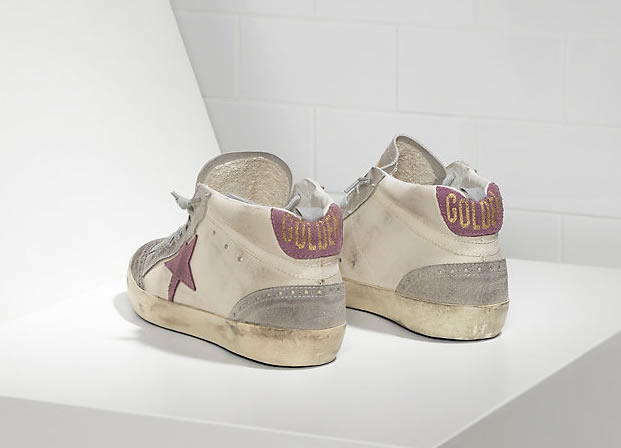 GGDB Sneakers MID STAR in Pelle e Stella in Camoscio WHITE PINK STAR Lovers size