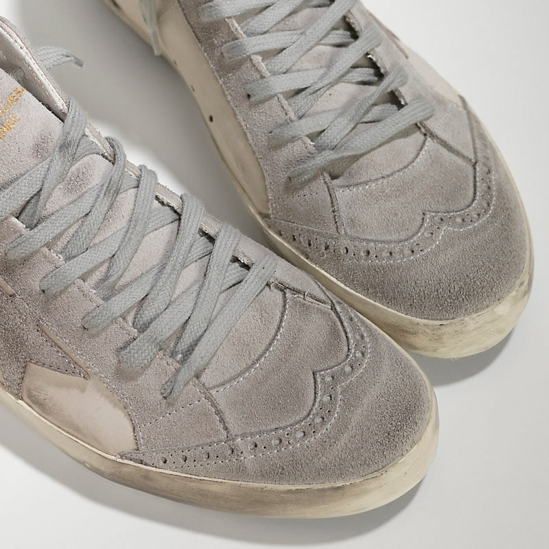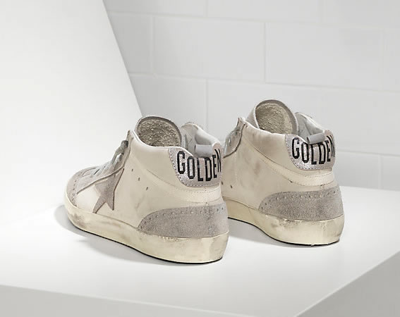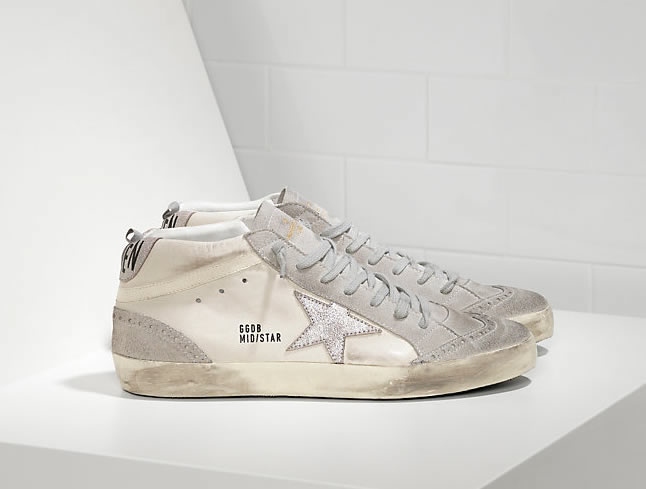 GGDB Sneakers MID STAR in Pelle e Stella in Camoscio WHITE SILVER STAR Lovers size