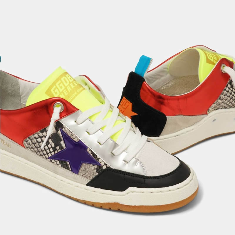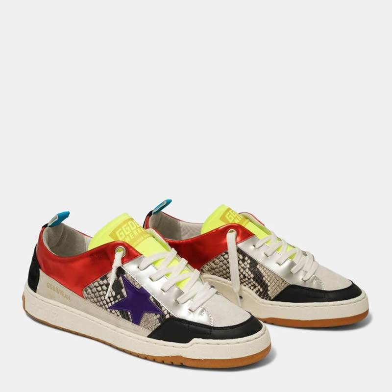 Red Yeah! sneakers with purple star and snakeskin-print insert Lovers