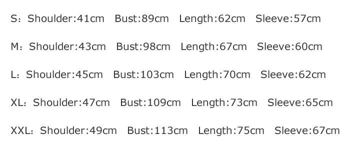 Size: S M L XL XXL