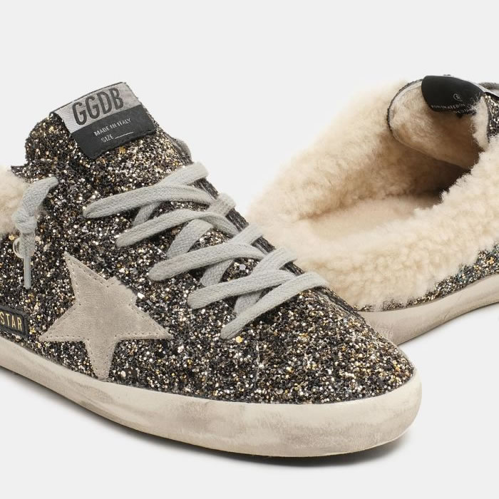 GGDB Super-Star sabot-style sneakers with glitter and shearling lining