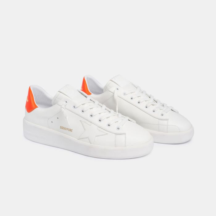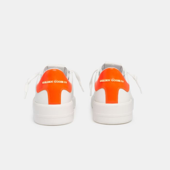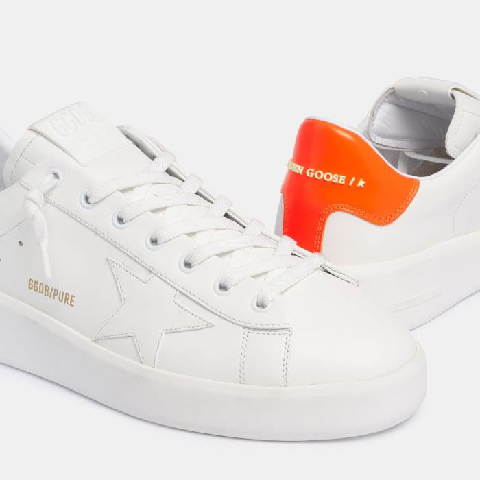 GGDB White Purestar sneakers with fluorescent orange heel tab