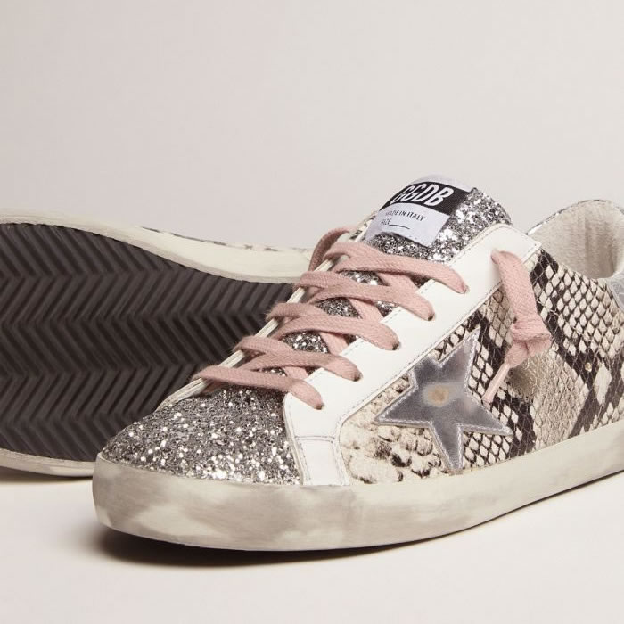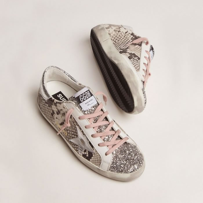 GGDB Super-Star LTD sneakers with snake print and glitter