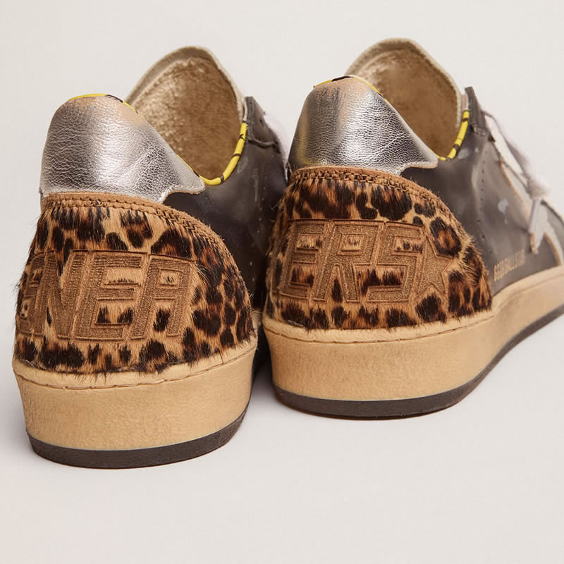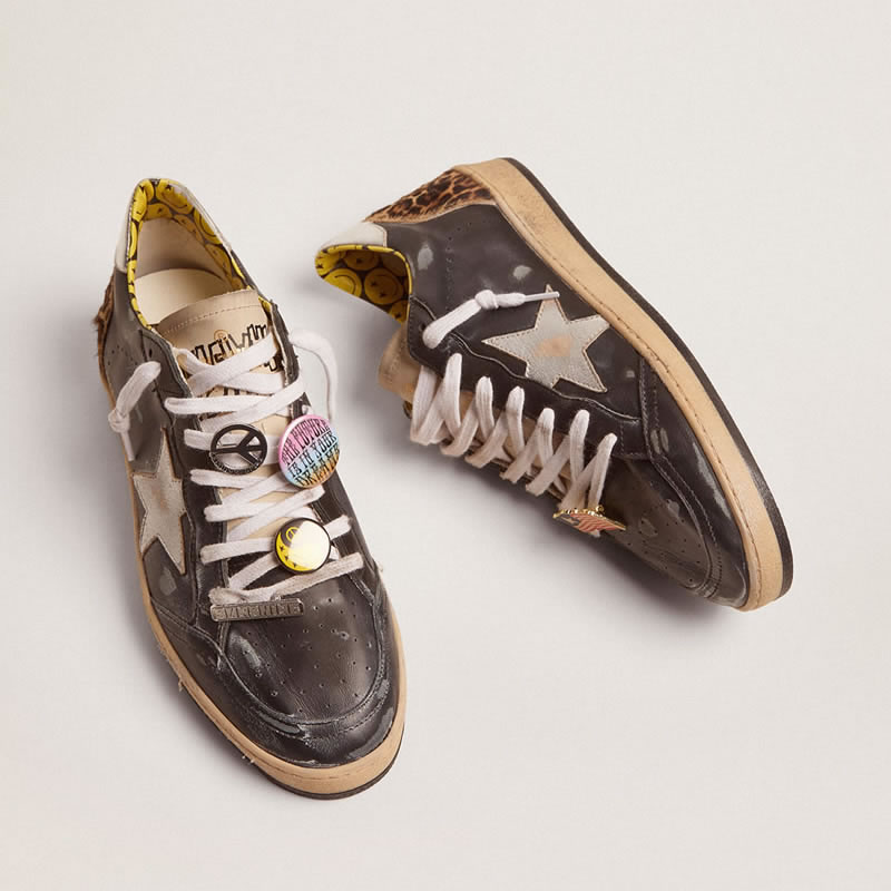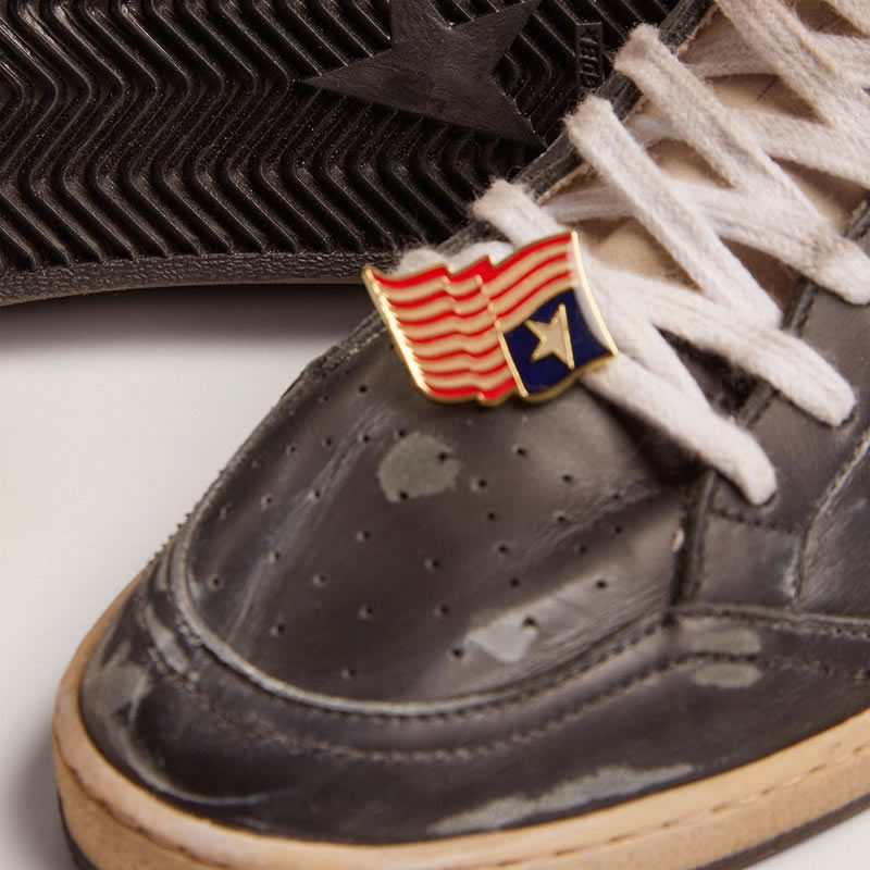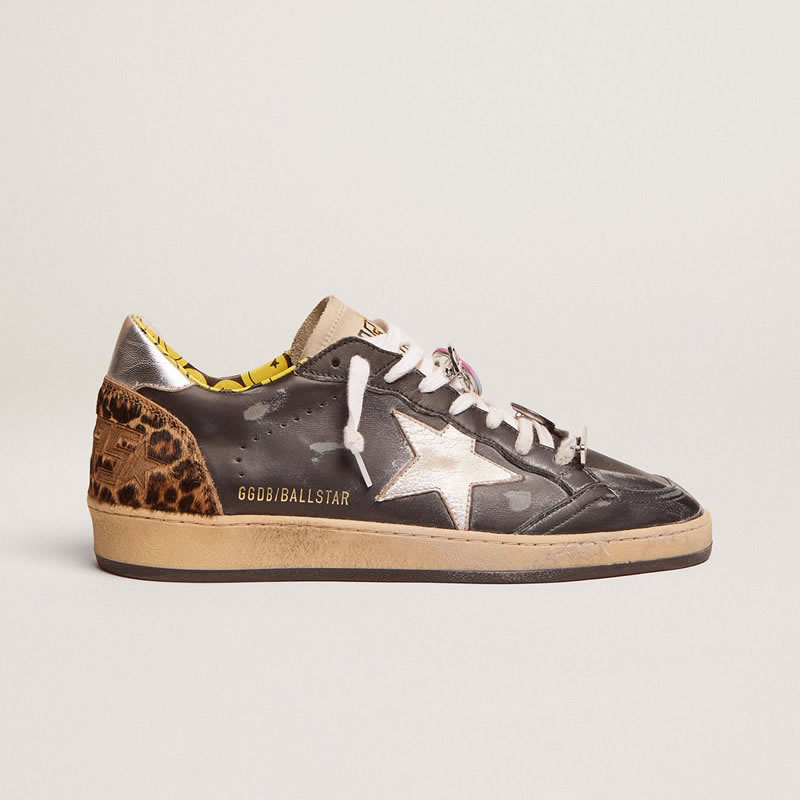 GGDB Ball Star sneakers in black leather with silver laminated leather star