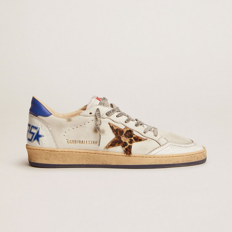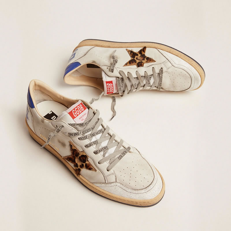 GGDB Ball Star sneakers in white leather with light blue details