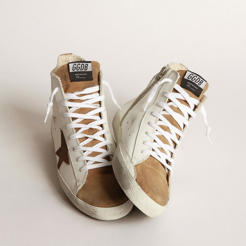 GGDB Francy sneakers in nude suede and white leather with contrast star