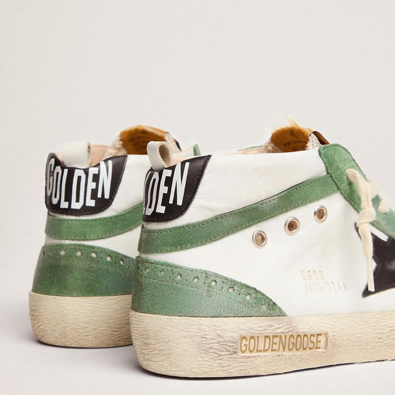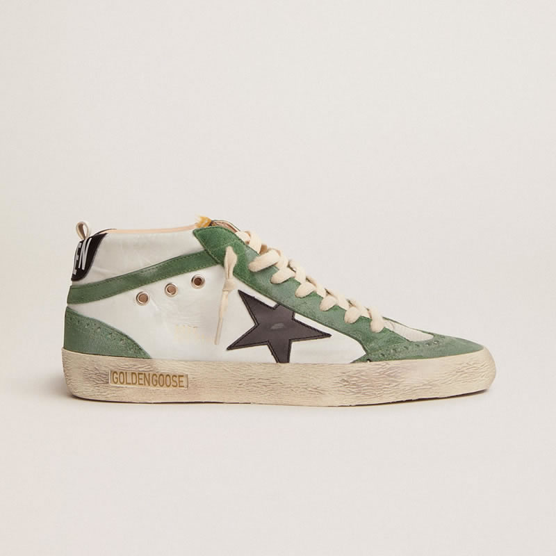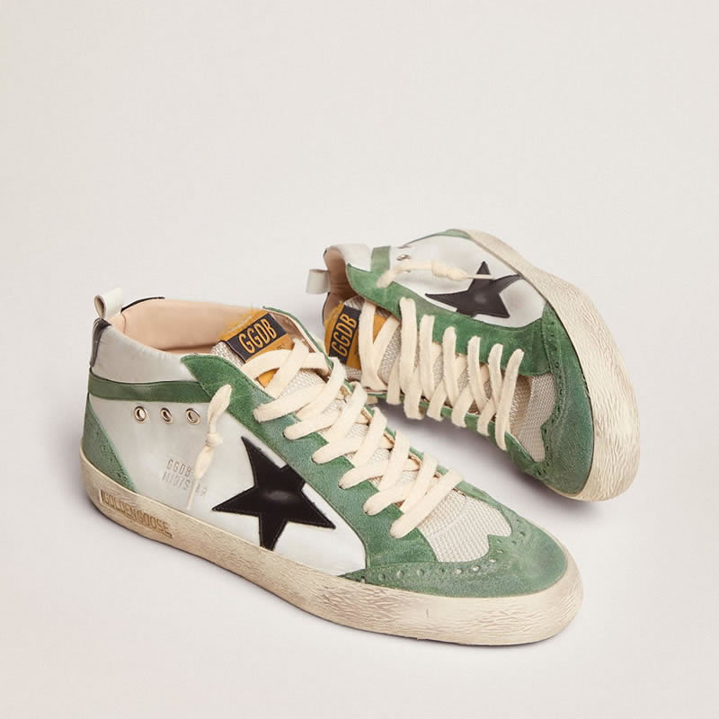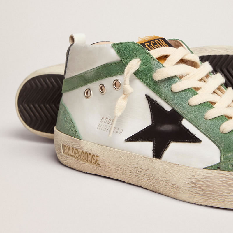 GGDB Mid Star LTD sneakers with black leather star and green suede flash