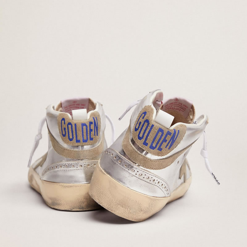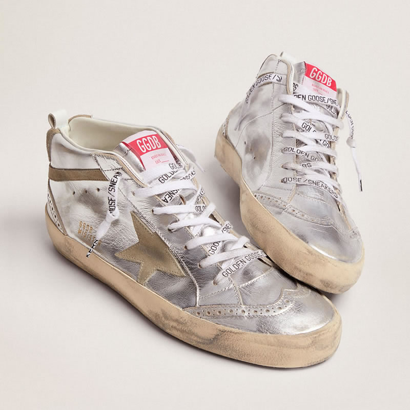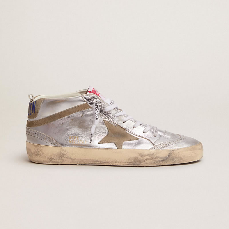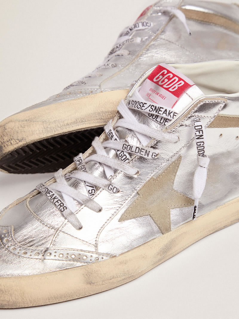GGDB Mid Star sneakers in silver metallic leather with star and flash in dove-gray suede