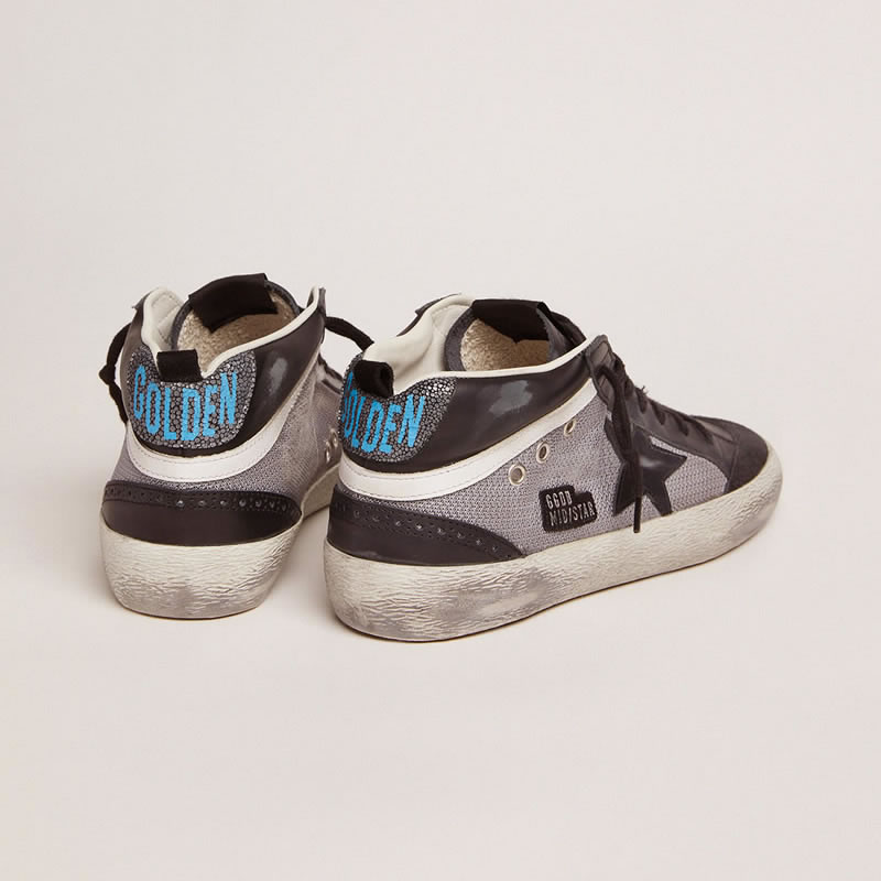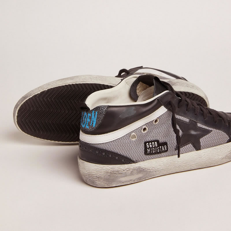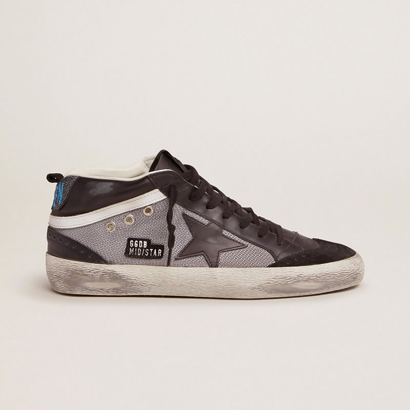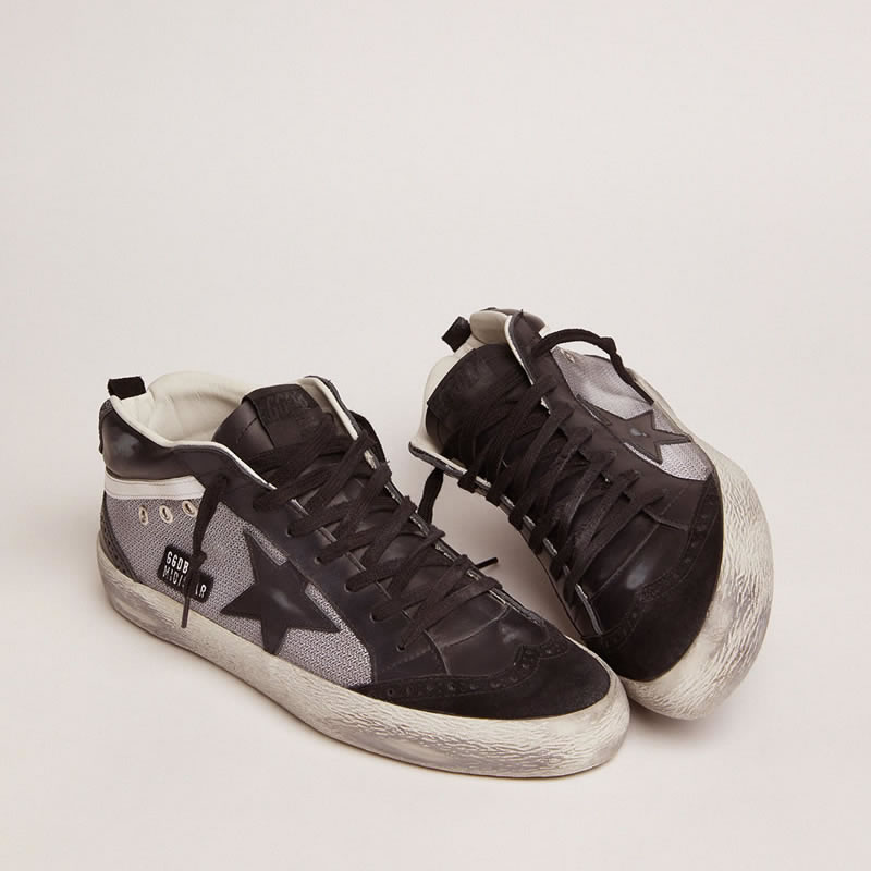 GGDB Mid Star sneakers in black leather and silver mesh