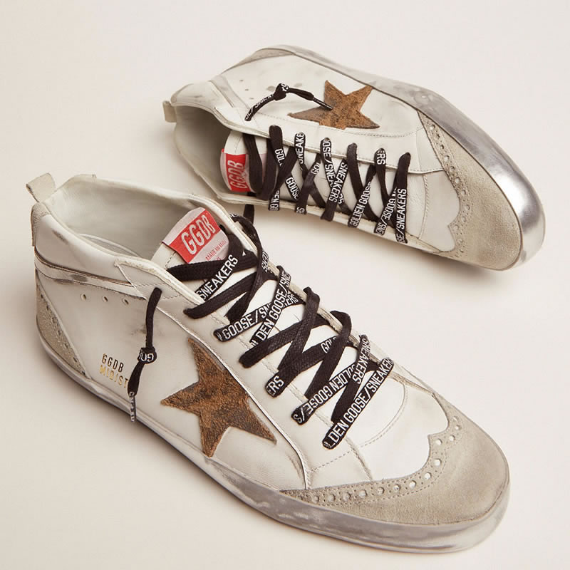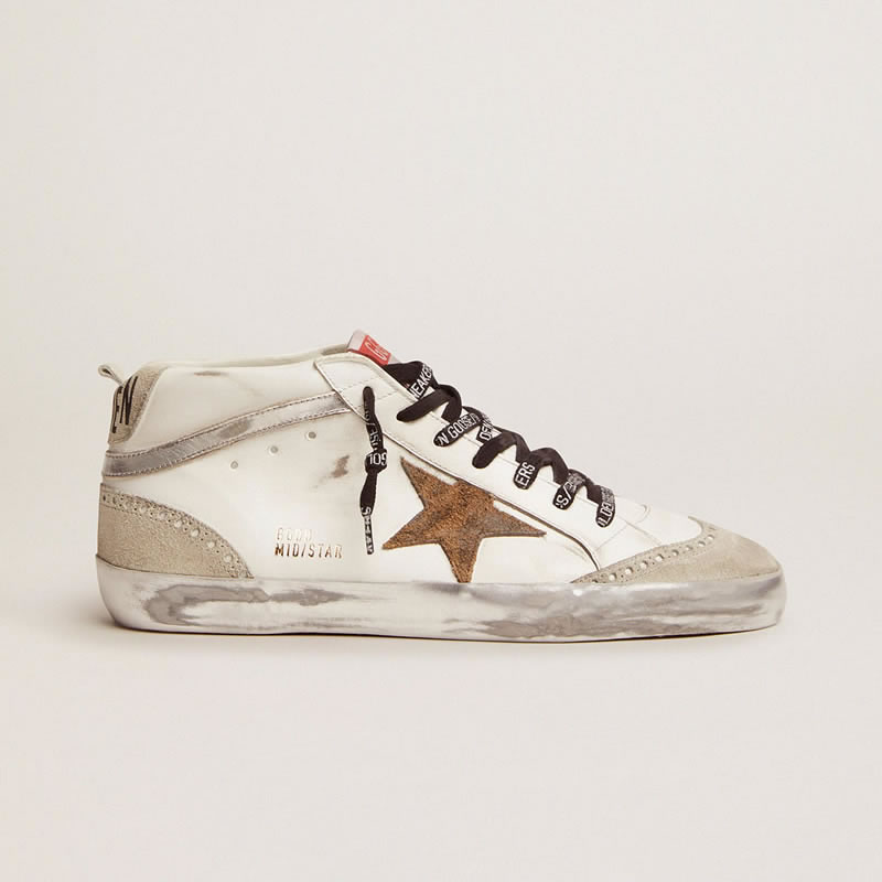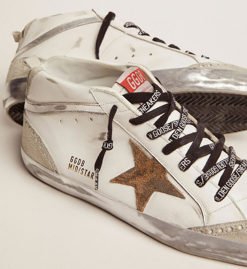 GGDB Mid Star sneakers with leopard-print suede star and silver laminated leather flash