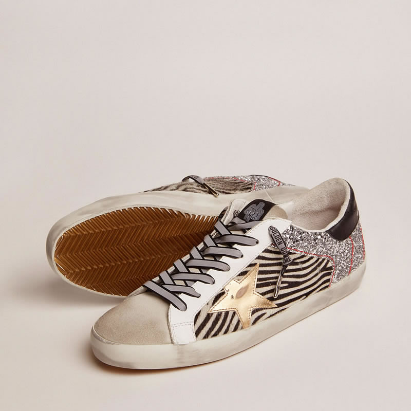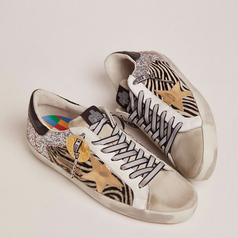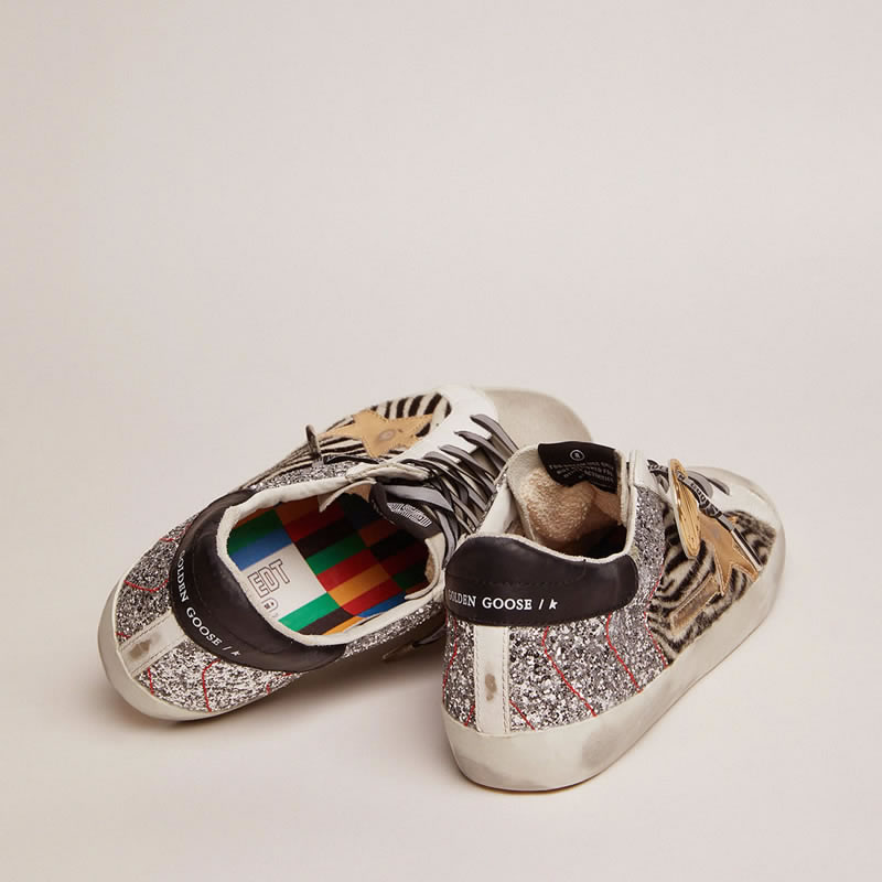 GGDB Super-Star Game EDT Capsule Collection sneakers in zebra-print pony skin and silver glitter