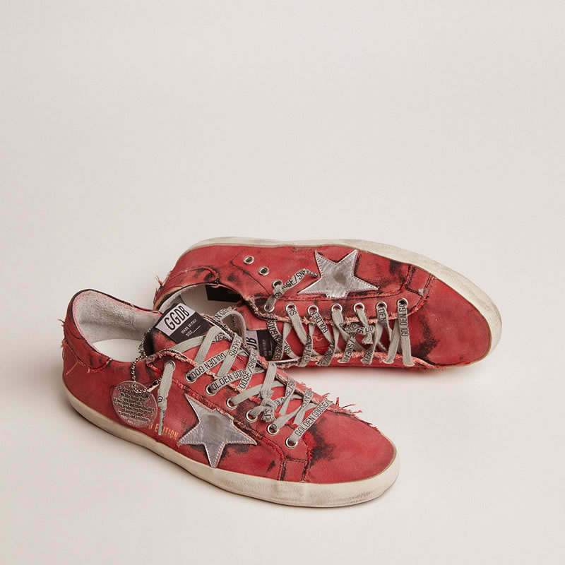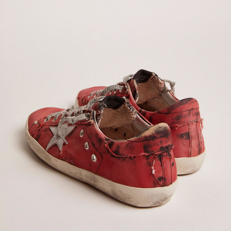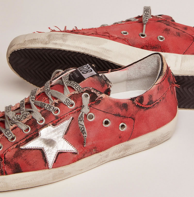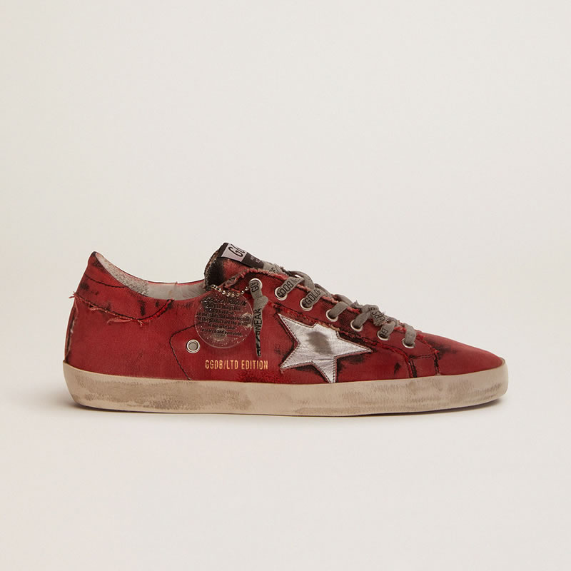 GGDB Super-Star LAB sneakers in red and black distressed canvas and silver laminated leather star
