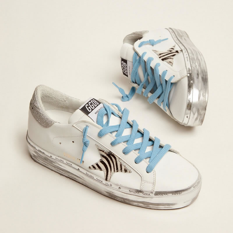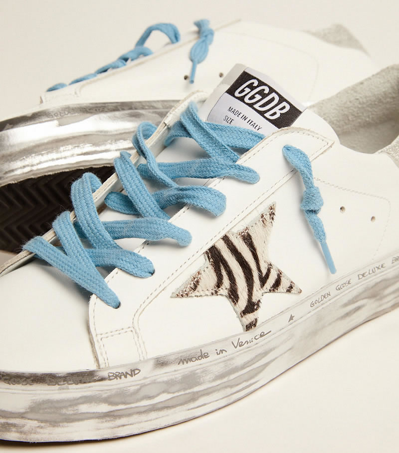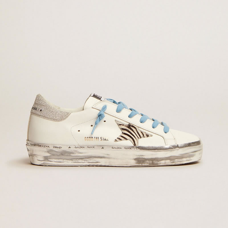 GGDB Hi Star sneakers with zebra-print pony skin star and silver glitter heel tab