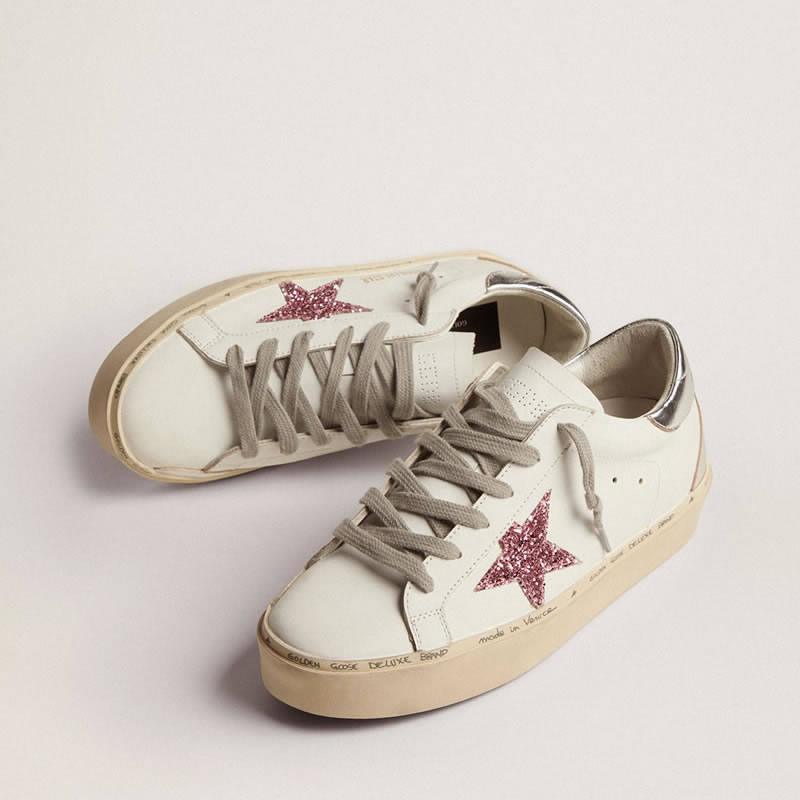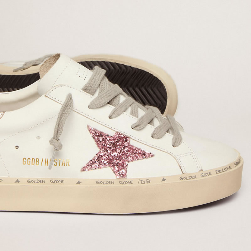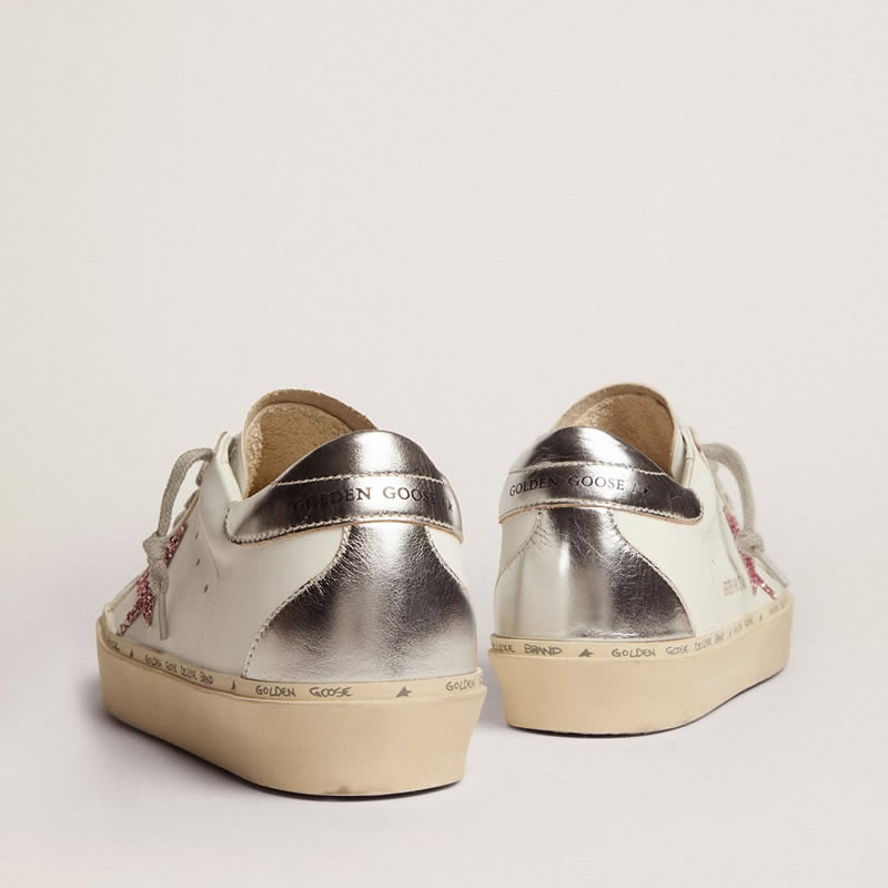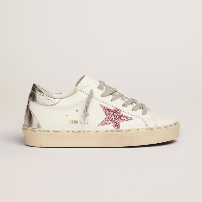 GGDB Hi Star sneakers with silver laminated leather heel tab and pink glitter star
