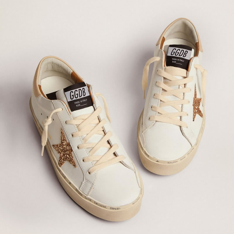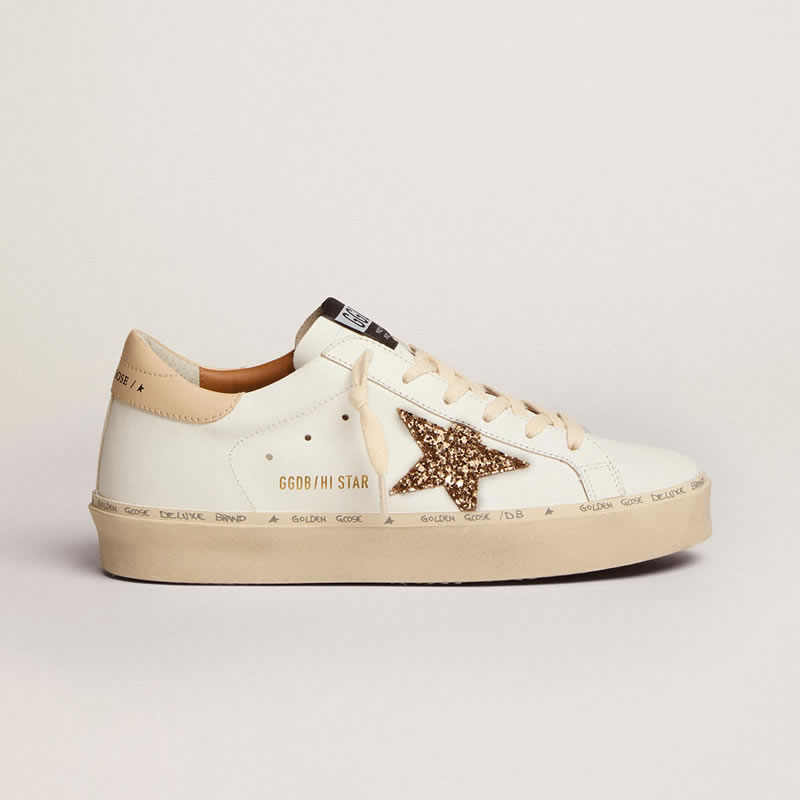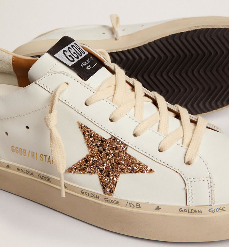 GGDB Hi Star sneakers with gold glitter star and beige leather heel tab