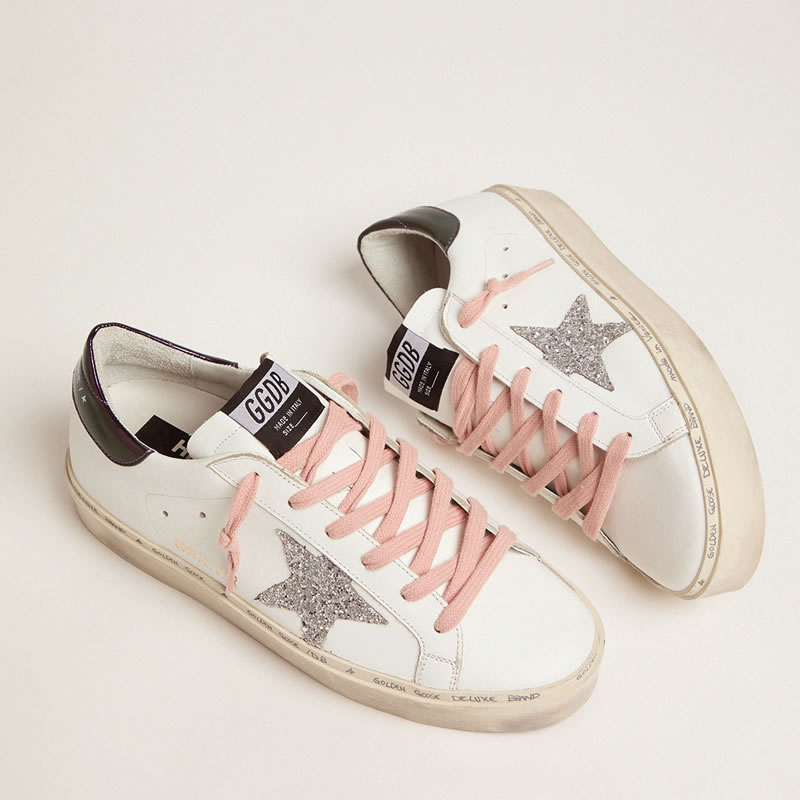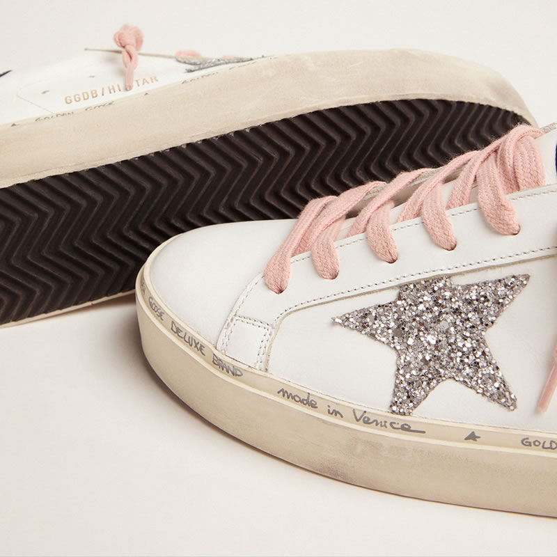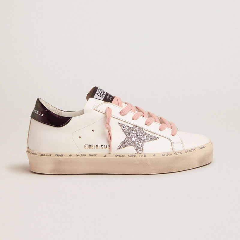GGDB White Hi-Star sneakers with glittery star and pink laces
