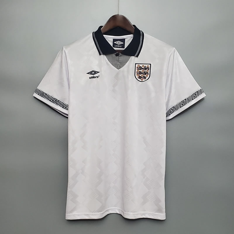 1990 England home retro soccer jersey
