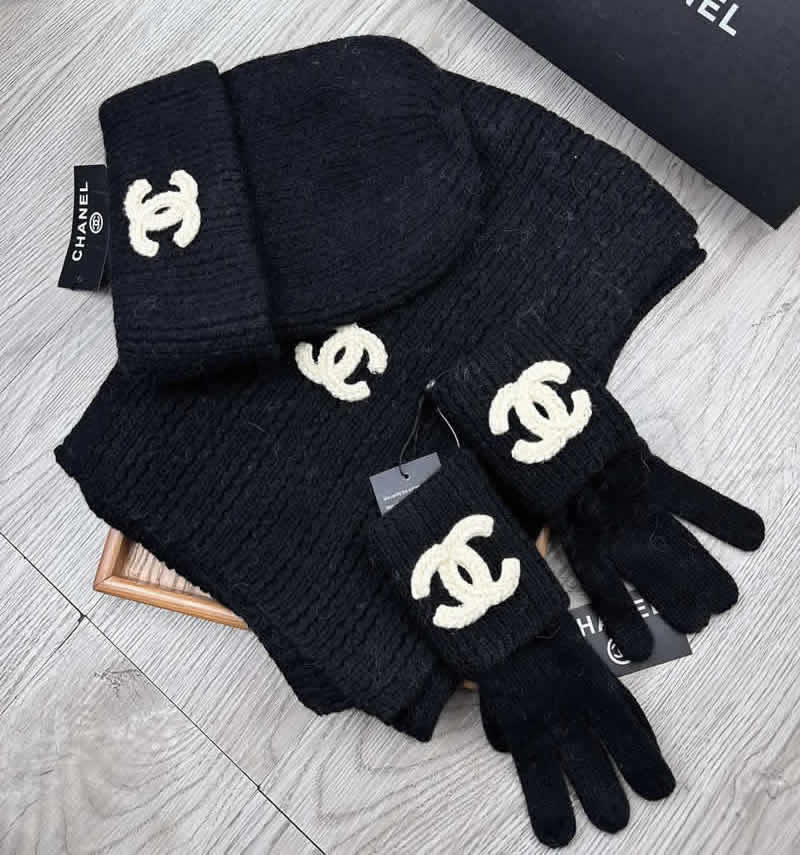 CHANEL Winter Scarves and Cap and glove Set with box best quality
