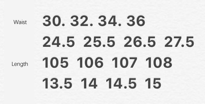 Size: 30 32 34 36